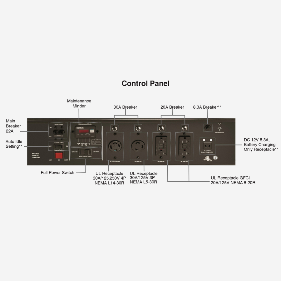 - Incluye 2 salidas de 120/240V~ 30A + 4 salidas de 120 V~ 20A