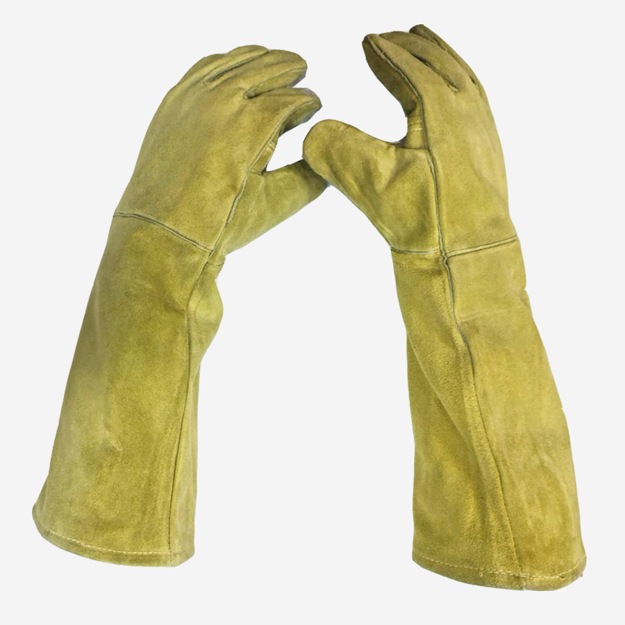– Guante de soldar de carnaza con palma y dorso amarillo.